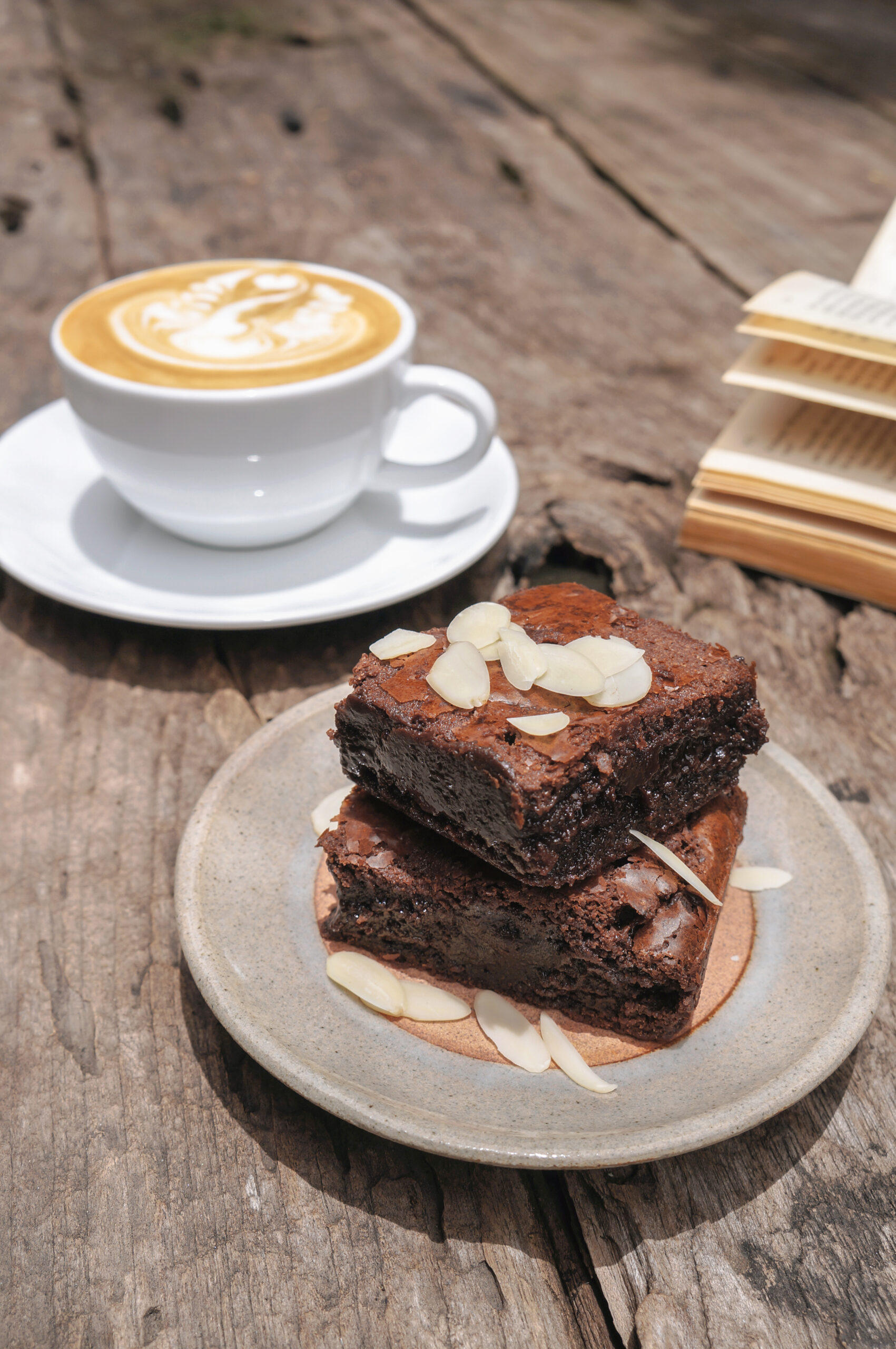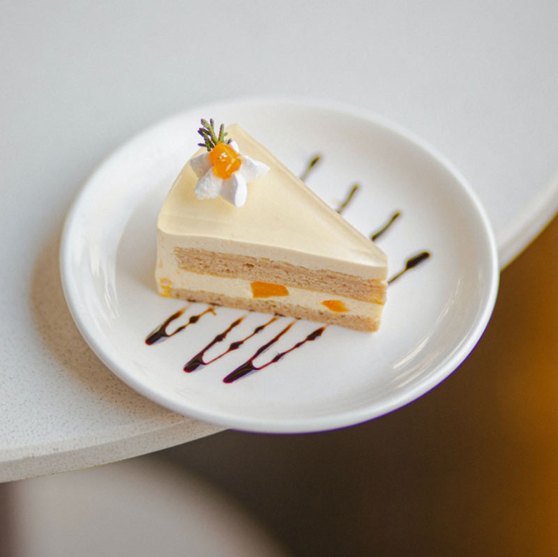 A cosy pairing of rich, aromatic coffee and a slice of sweet, freshly baked cake — the perfect treat for any time of day.